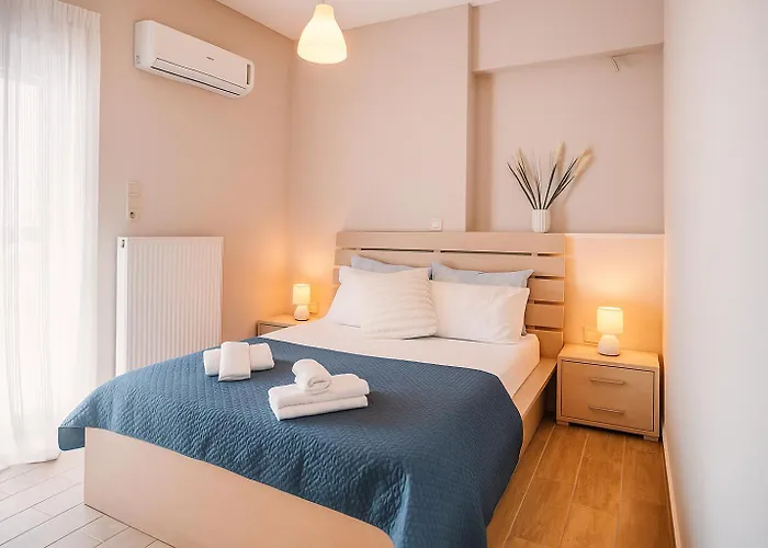 L'Appartamento Onda Blu Deluxe Loutraki include servizi di self-catering, come un angolo cottura attrezzato con un bollitore elettrico, un frigo e un forno. La stazione degli autobus Station Loutraki si trova a una distanza di 700 metri dall'appartamento.